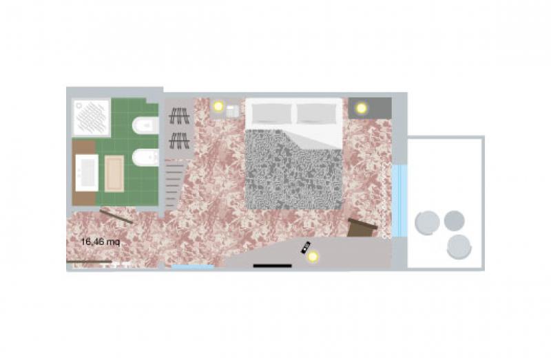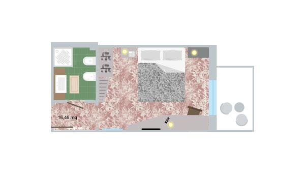 Die Zimmer befinden sich auf der Westseite des Hotels und bieten Ruhe und Frische. Ausgestattet mit Terrasse, auch mit seitlichem Meerblick in den oberen Etagen.