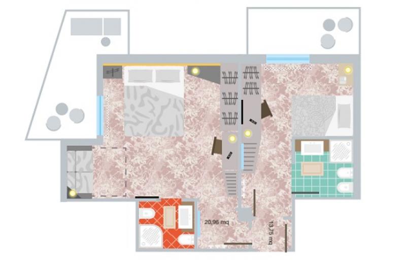 Für 5, 6 Personen. Komfortabel, ideal für Familien, bietet es Platz und Dienstleistungen mit zwei großen Sonnenterrassen bis zum Sonnenuntergang. Es besteht aus zwei miteinander verbundenen Zimmern mit Doppelbett plus Schlafcouch und französischem Bett. Zwei Lcd Satelliten-Tv mit Sky Vision, Telefon, Klimaanlage und Heizung. Doppelbad mit Haartrockner und Duschkabine. Bei besonderen Bedürfnissen fragen Sie nach einem Kostenvoranschlag.